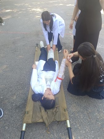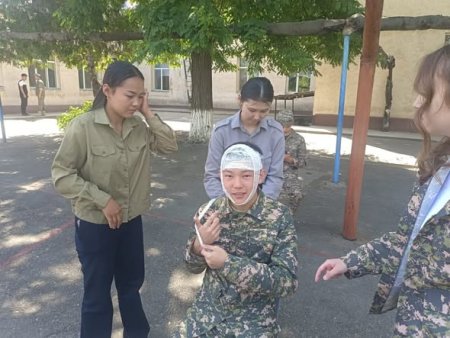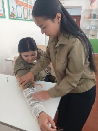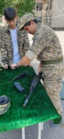 " Калашников автоматын жартылай бөлшектеу және жинақтау жаттығулары", " Жүрек қызметінің тоқтауы және дем алмай қалу белгілері .Қолдан дем беру және жүрекке тікелей емес массаж жасау ережесі" және "Күйіктер туралы түсінік , олардың сипаттамасы , күйіктік шок туралы түсінік" тақырыптарында оқу-жаттығу сабақтары ұйымдастырылып өткізілді.