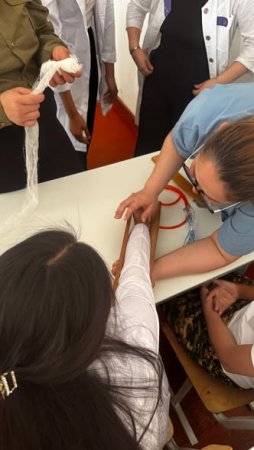 Шымкент қаласы білім басқармасына қарасты А.П.Чехов атындаға N21 жалпы орта білім беретін мектебінде 2024-2025 оқу жылының 19-23 мамыр аралығында Алғашқы әскери және технологиялық дайындық пәні бойынша 10 сынып ер балаларына оқу-жаттығу далалық (лагерлік) жиыны, қыз балаларға "Дала жаттығу жиындары" кезінде медициналық санитарлық дайындық сабақ тақырыптарының жоспары негізінде 20.05.2025 ж. "Қорғаныстағы сарбаз" мен "Шабуылдағы сарбаз", "Таңғыштардың түрлері және дененің әр бөліктері" және "Кеудесі, іші жараланған кезде стерильді таңғыштарды таңу тәртібі" тақырыптарында оқу-жаттығу сабақтары ұйымдастырылып өткізілді.