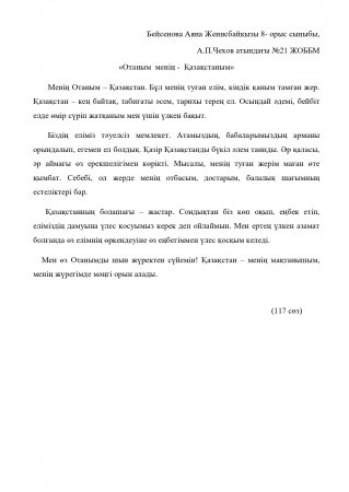 Шымкент қаласы білім басқармасына қарасты А.П.Чехов атындағы N21 жалпы орта білім беретін мектебінде 25 қазан- Республика күні аясында «Отаным менің- Қазақстаным» тақырыбында эссе байқауы ұйымдастырылып өткізілді.